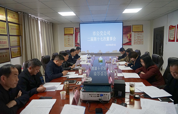 4月1日,市公交公司召開2021年第一次股東會暨二屆十七次董事會,公司全體股東、董事會成員參加會議,監(jiān)事會、審計監(jiān)督組成員、紀委書記列席會議。公司董事長張曉強主持會議。